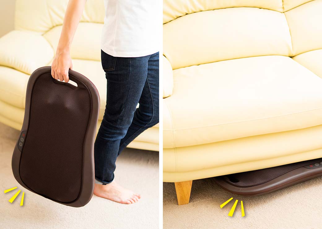 もみ範囲は上下約50cm×幅約27cm。背中全体の広範囲を一気に同時マッサージができます。