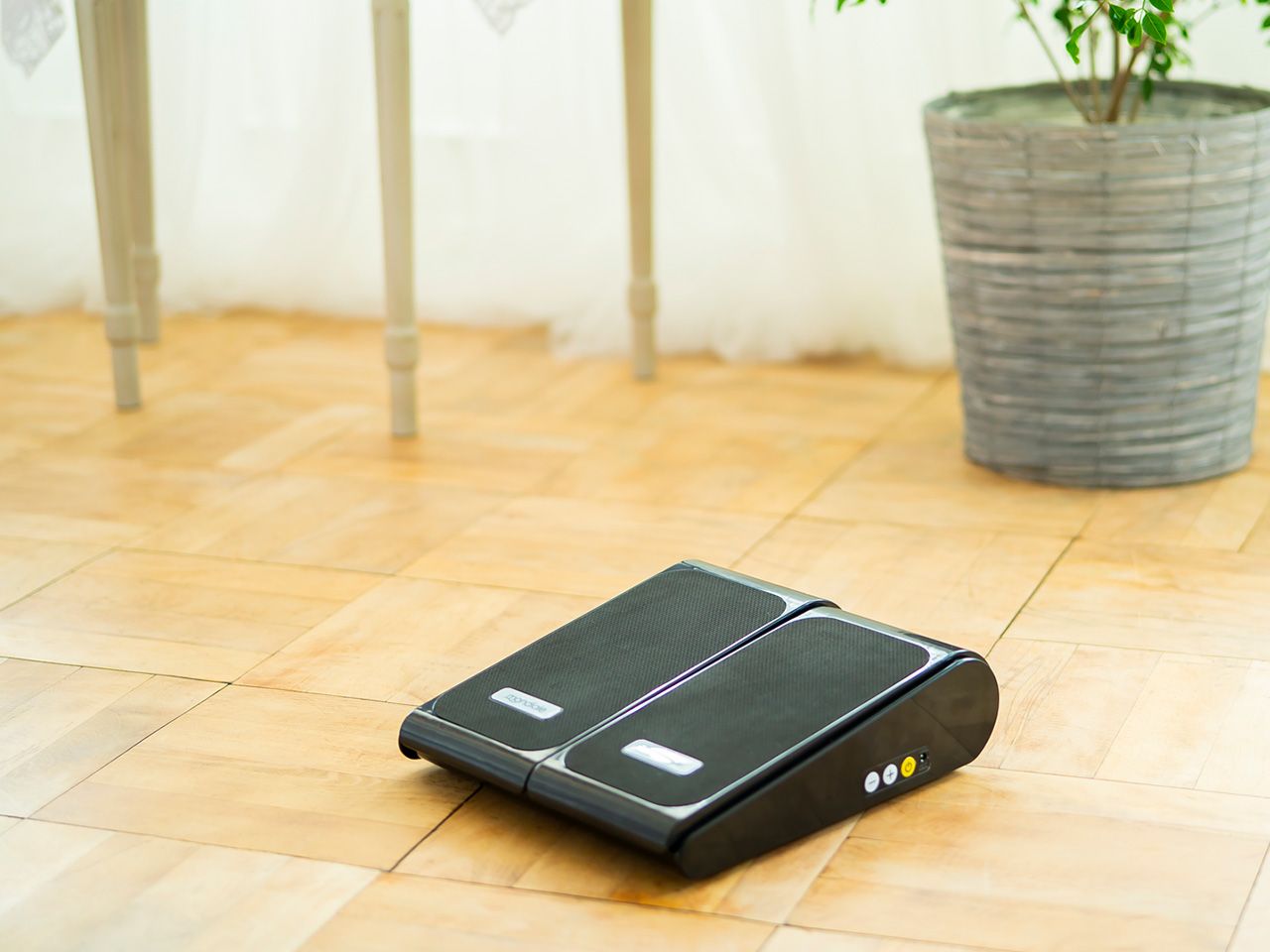 独立した2枚の振動板が縦に交互に動くので、振動が横に逃げることなく、しっかりと身体に伝わります。また、約10度の緩やかな傾斜になっているため、同時に足首のストレッチも行える優れもの。