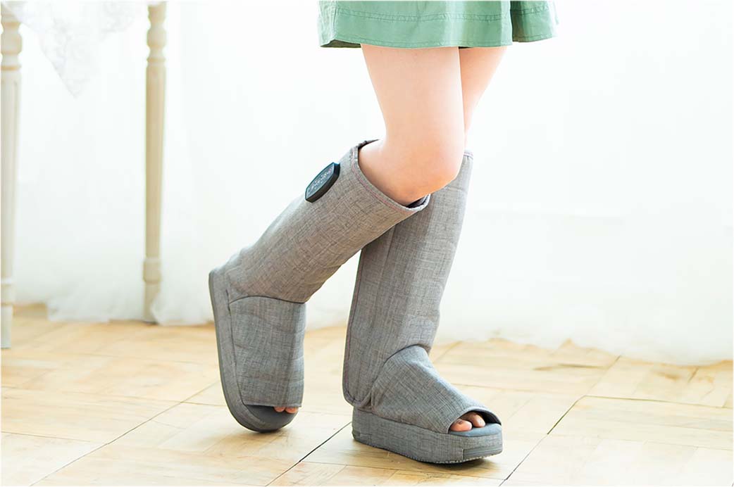 そんなお悩みには、ひざ下から足元までをすっぽり包み込んでケアしてくれる、ブーツ型のリラクゼーション機器を。EMSで足裏から筋肉を刺激しながらエアバッグが脚全体に圧をかけて、スッキリリフレッシュ!