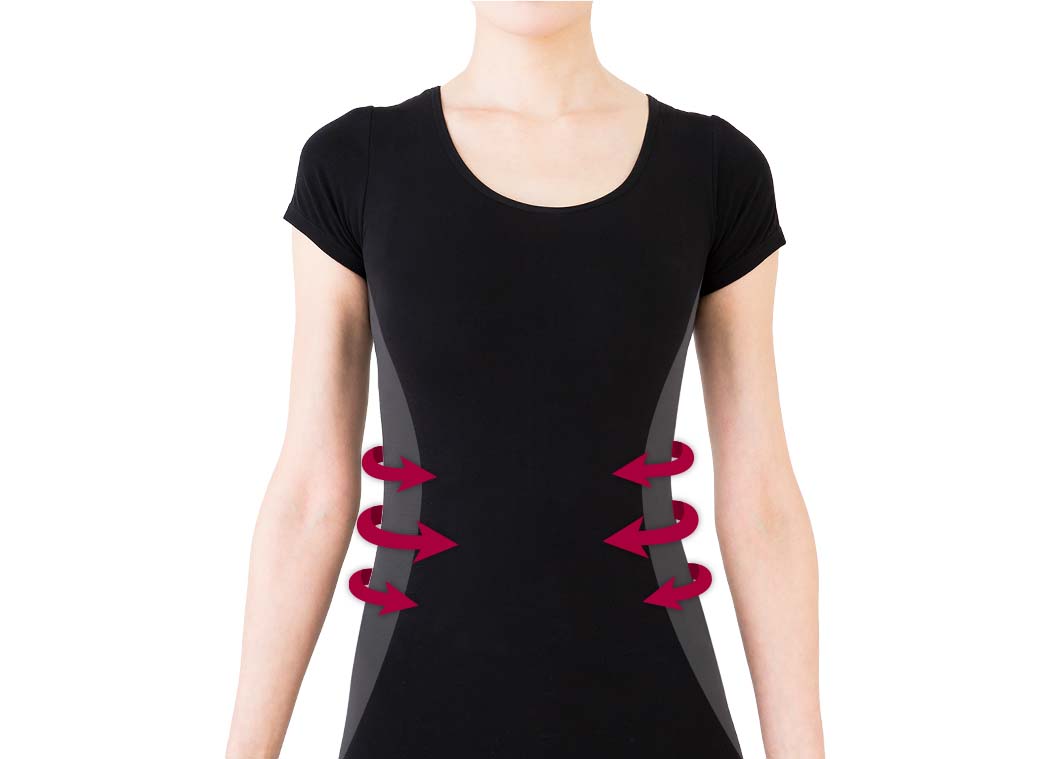 背中部分を着圧することで、ねこ背になりがちな背筋をピン!自然に姿勢のよい体勢を習慣づけることができます。