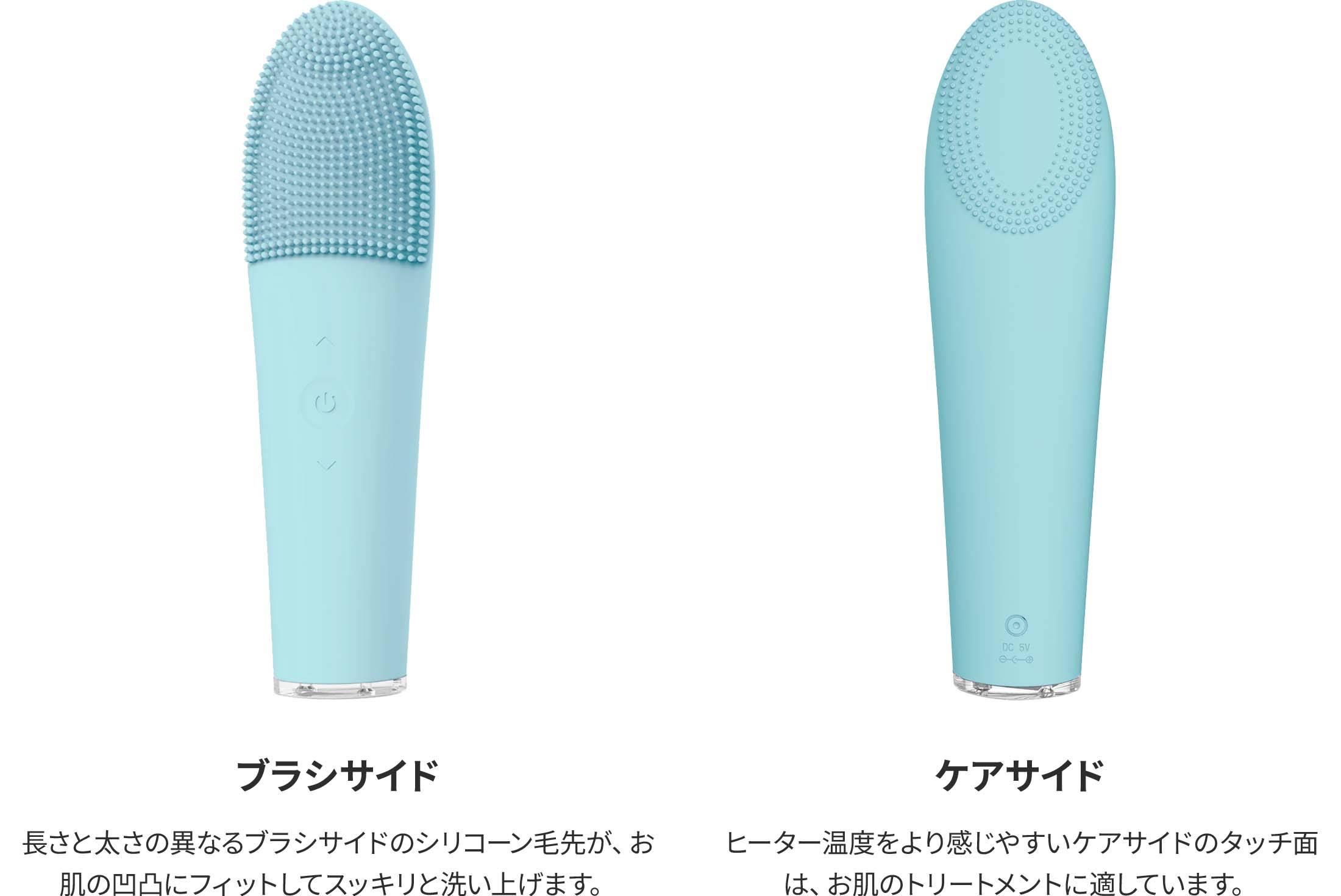 お肌への刺激が少ないシリコーン製のブラシは、1分間に約8,000回(最大レベル時)の音波振動で手では落としきれない汚れもスッキリとオフ。ヒーターと合わせたモードを使用してトリートメントも出来る優れもの。