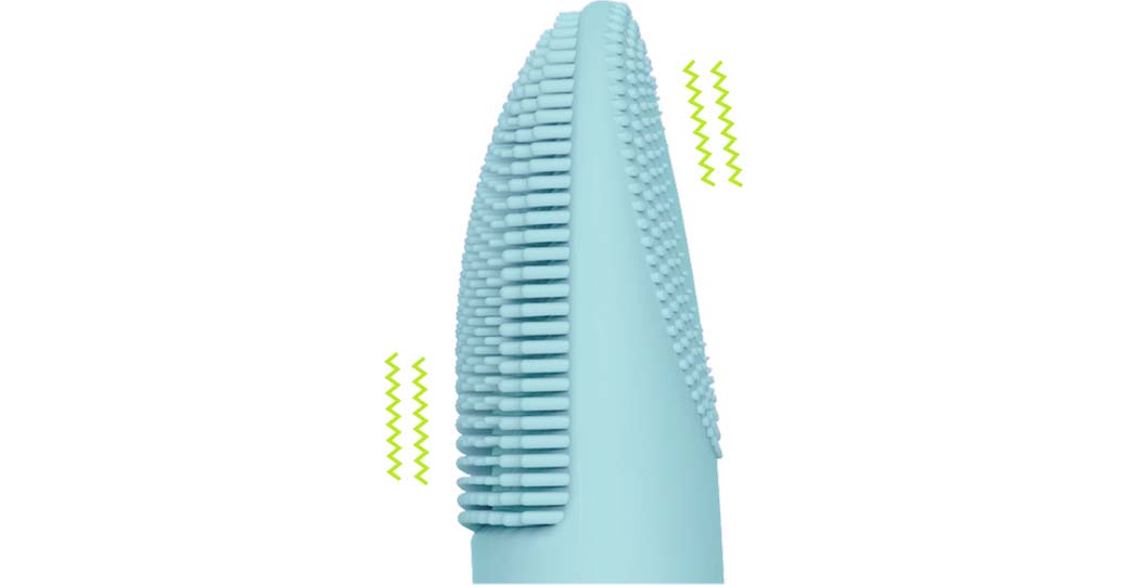 シリコーン製のブラシが毎分約8,000回振動し、汚れを浮かせてオフ。