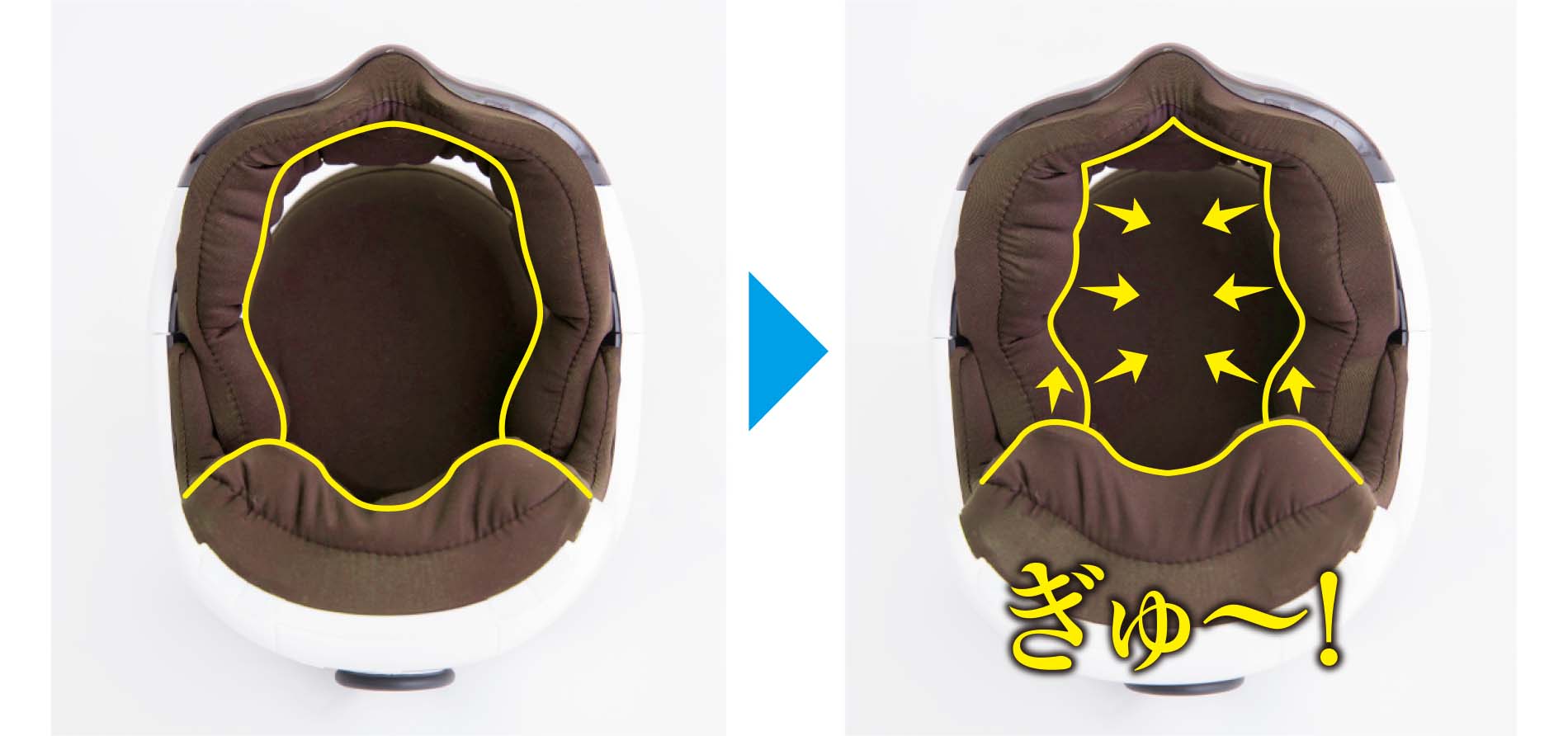 | 寸法 | 約W200×L250×H240mm ※頭囲約56〜64cmまで対応 |