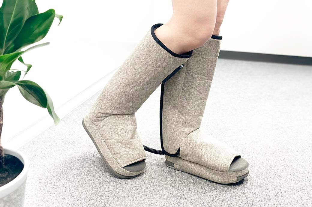ひざ下から足元までをすっぽり包み込むブーツ型のリラクゼーション機器がリニューアルして新登場。